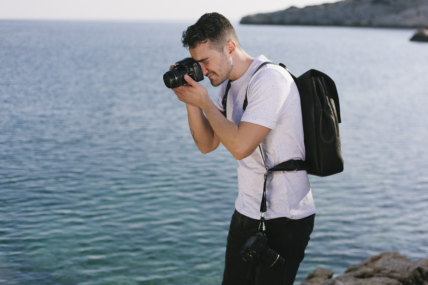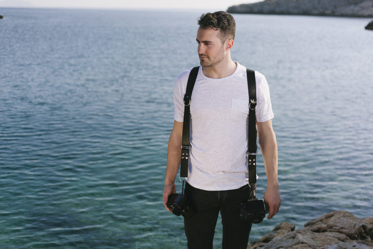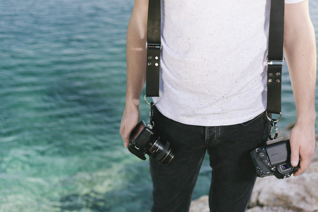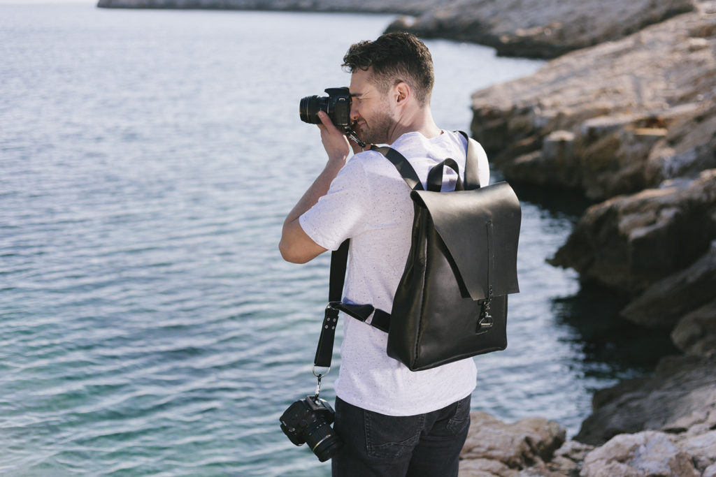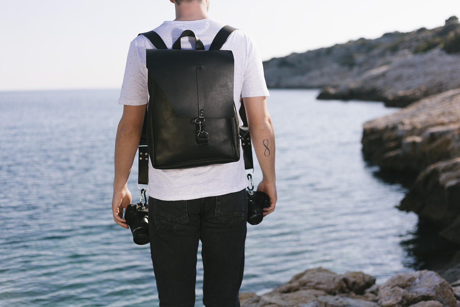 We wanted to create a bag special for photographers. A bag that could be held everywhere and could be combined with absolutely everything. That’s why we came up with the idea of creating a spacious enough backpack, using a great soft black leather. A bag that lets you work with one or even two cameras functionally and comfortably. The ROSTOCK black leather photography backpack is ideal for travelling cause you can have your camera secured and accessible at the same time. This is the dual camera variation. For the single-camera enter here‣Genuine leather