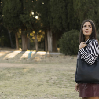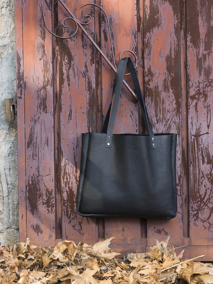 Made by pure, genuine, black leather with a shape that makes this tote bag very elegant and classy. You can team this tote bag with every outfit and with every situation, from a business meeting in the office to a relaxing walk into the city's streets. This Black Leather Tote Bag will become an all-day choice. That's the reason we used black leather because with black you have seriously no limitations. Apart from the colour, we chose a very soft and light type of leather because we didn't want the bag to be heavy. Something beneficial especially if you are about to keep it from day to night. It is spacious enough so that you can fill it with all your necessities, such as A4 paper or a small laptop (13 inches). Inside there is a leather case as an efficient solution to keep the inner part of the bag tidy and organised. In this case, you can put your pen, your phone, and a small notebook. On the opposite side, there's a key loop.‣Genuine leather