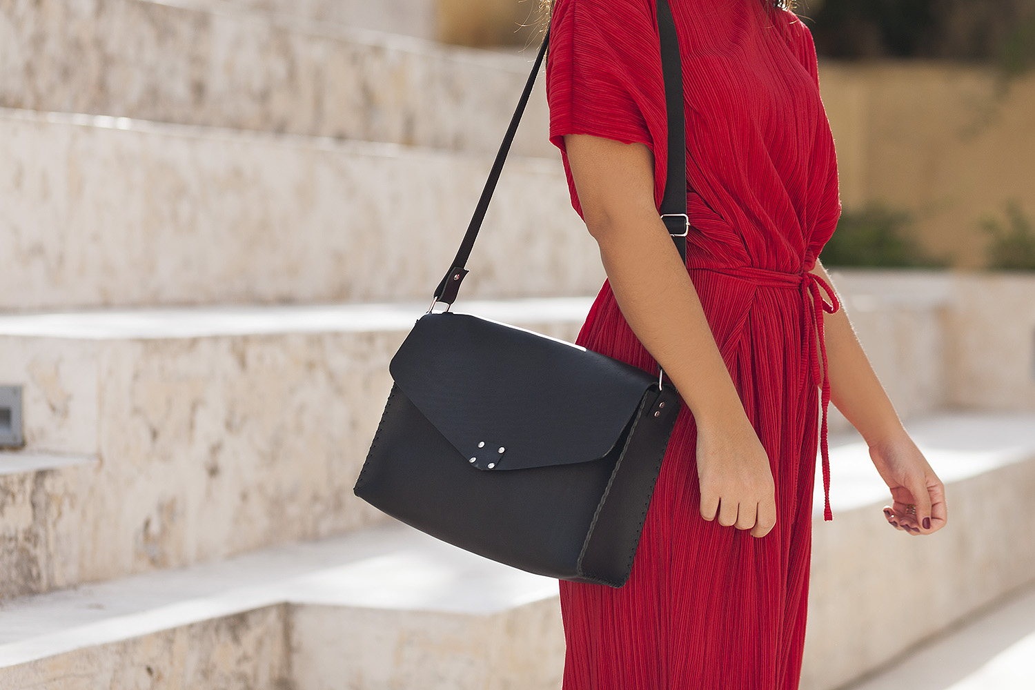All the bags are designed and handcrafted mainly with love, care and the need for expressing a piece of ourselves.‣H:20cm x L:32cm x D:9cm